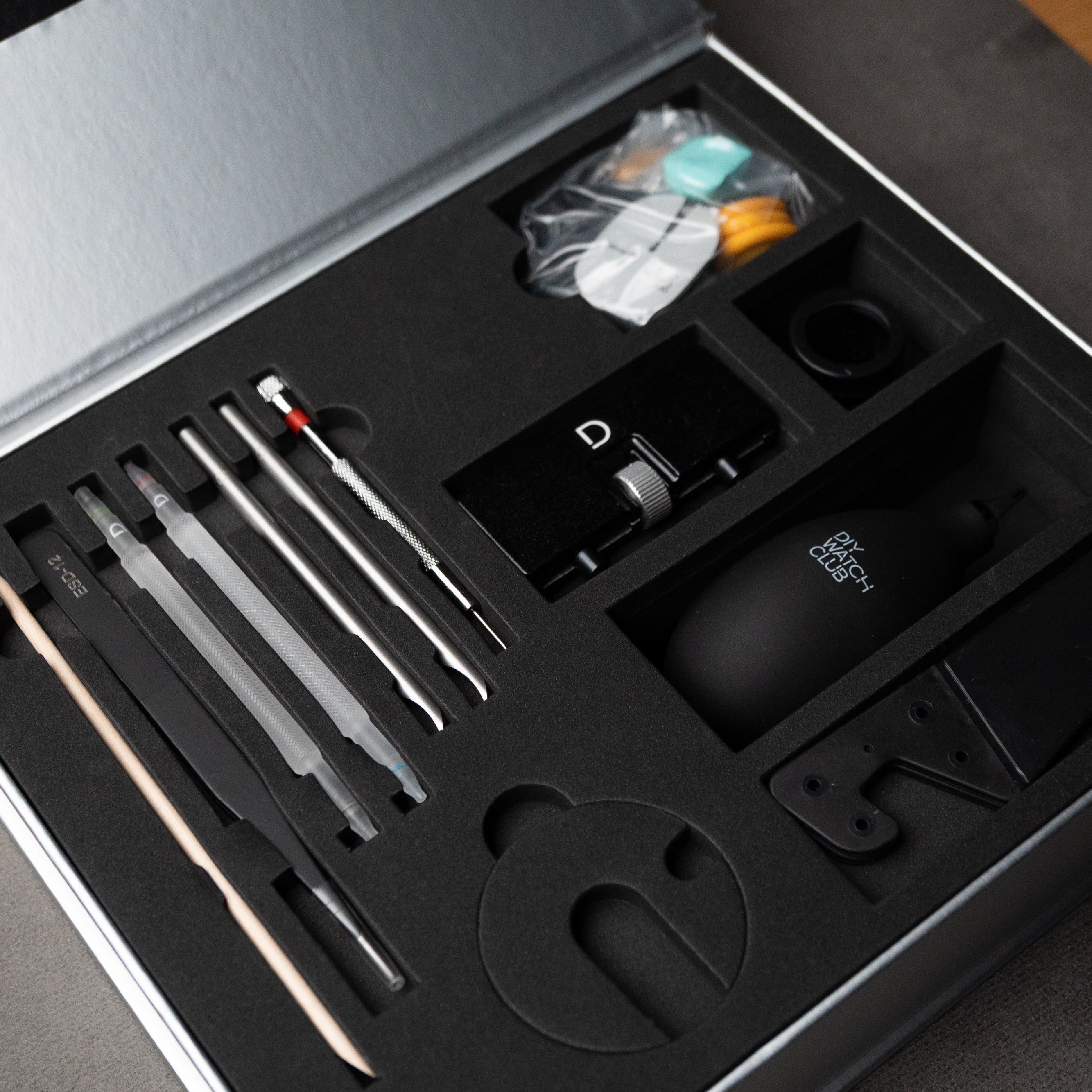 このキットには、機械式腕時計を組み立てるために必要な工具がすべて揃っています。